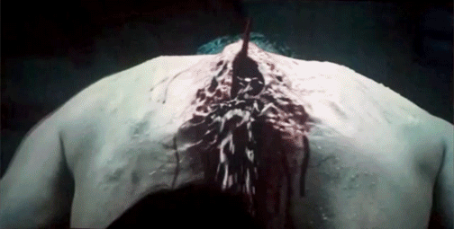 A selection of Alien: Covenant footage was screened at the special Alien Day event last week and one of the scenes Fox debuted completely showed the Neomorph back-bursting scene, as well as the Neomorph throat-bursting scene. Attendees have been discussing the footage on social media, but no images or recordings have really made their rounds publicly yet... until now. One of our forum members, TRVPLORDIV has provided us with a first look at images from the footage, specific to when the Neomorph bursts out. We did also receive a recording of the footage, but will be refraining from sharing that online, as we wish to keep certain experiences for the cinema. These images however give us a great look at the baby Neomorph - which by the looks of things is quite large upon birth, much larger than a Chestburster.