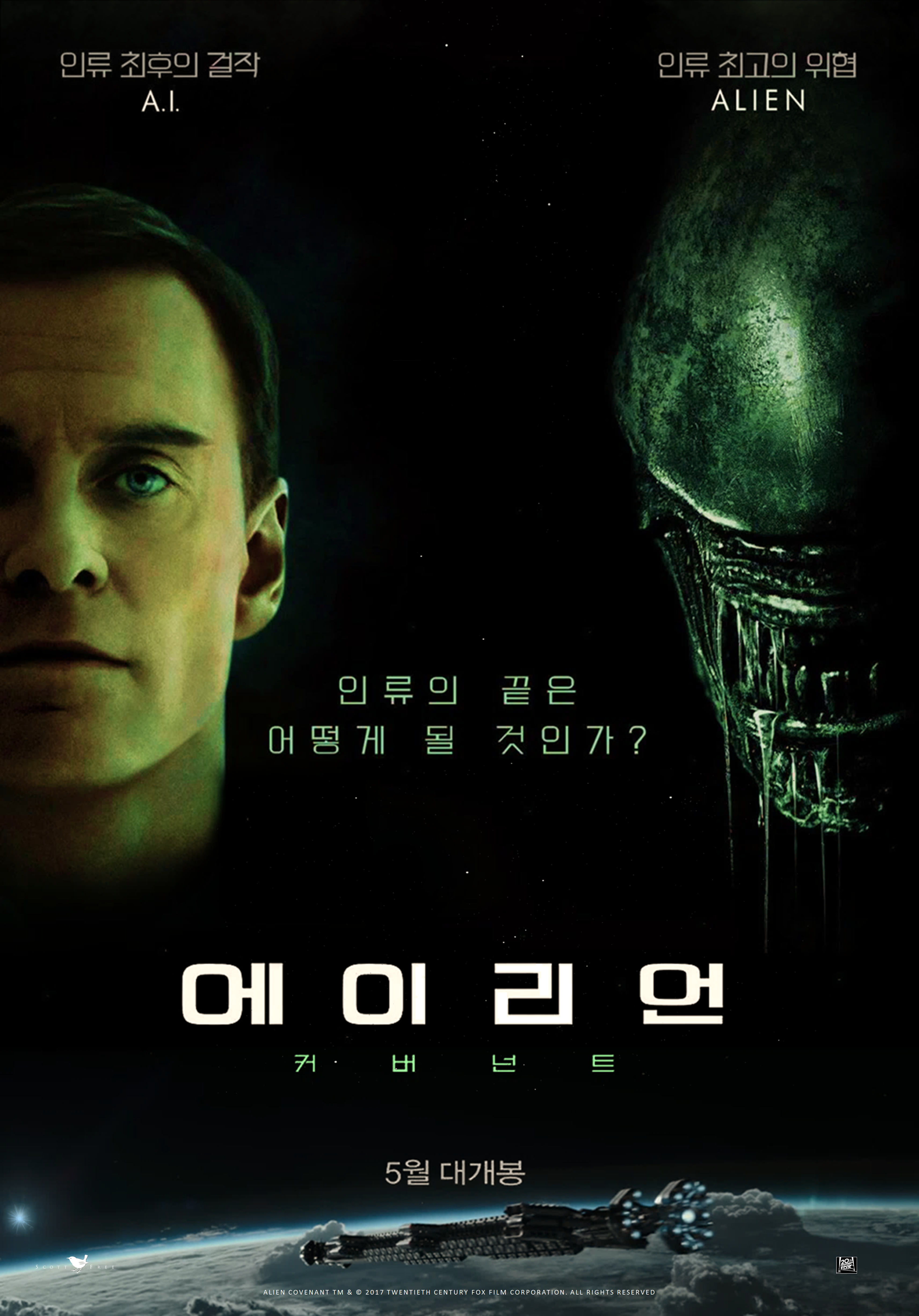 The new Korean Alien: Covenant poster, which has been helpfully translated by a user over on Reddit, is said to read: 'What will be the end of mankind?'
