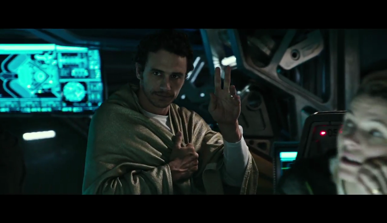 We also get our first look at James Franco, who is the ship's captain, but already looks ill (as noted previously), prior to entering cryo-stasis.