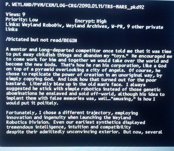Both give that Nostramo kind of a look, and remember the Nostramo was a vessel created in 2101 and commissioned to later be used by Weyland-Yutani