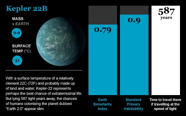 We have to remember Mass is not the same as dimensional size, a World can be in Diameter 3-4X Earth but the Mass would be more than that. Kepler 22b is also temperate like Earth.. so Scientists claim.