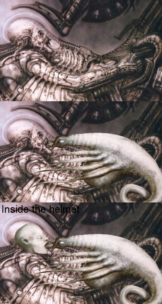 It was at that moment I woke up. Some details like the images and writing on the tablet are fuzzy and can't really remember completely. But I remember seeing a similar mural to the one in Prometheus. But instead of the two variations of Engineer / Human with two alternate Facehugger designs on them, it was similar but new. The Hugger looked right. But the Chestburster looked very different, like almost fully grown, with multiple limbs and a very pointy skull. I can only assume my mind cooked this up after thinking about the Neomorph description.