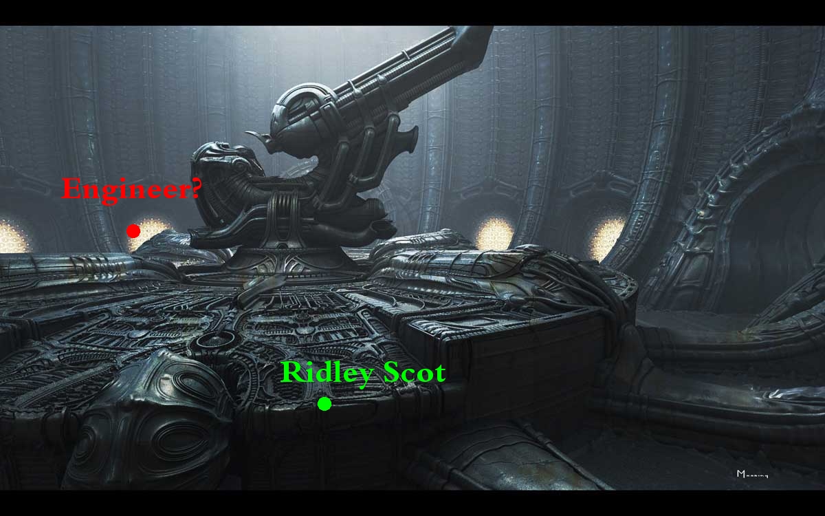 I'm quite happy with the feeling that the pic with Ridley is not from Prometheus - I've found a decent one from Prom to compare it to, and I don't think they're the same Jockey Chair. The base it's standing on is different, and the whole thing seems more "rounded", cleaner and less detailed to the one from Prometheus... Look at the three support struts, definitely not the same.