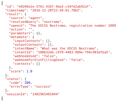 ...we can see the 'intent name' is 'What was the USCSS Nostromo'. Might help in routing out some more info.