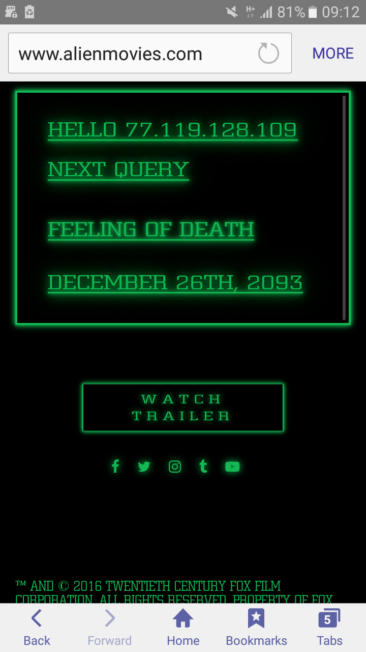 There is a chance that this MU/TH/UR interface has just been created for fun as a means to help promote the forthcoming Alien: Covenant, but as is usually the case with such viral marketing we here at Scified suspect this new interface has some hidden secrets relating not only to Alien: Covenant but the franchise as a whole. As such we urge our fans to post any and all discoveries from perusing the MU/TH/UR interface together here in this thread so that we can together accumulate a comprehensive list of the more interesting tid-bits of information this new online toy has for us Alien fans.