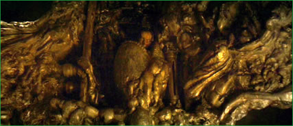 What if... the Engineers upon visiting ancient humans demanded many human sacrifices, whom would kneel within the bowels of the Juggernaut as the Engineer fed each of them a drop of black goo, that in time transformed each of these human sacrifices into an egg. This could explain the artifacts discovered by Shaw and Holloway, depicting an Engineer pointing to the Zeta II Reticuli system; inferring "This is where I am taking the human sacrifices."