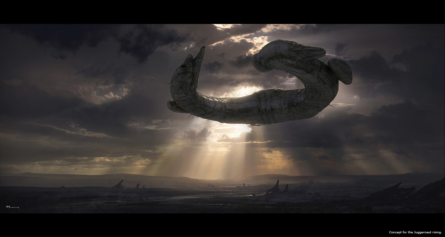 But if we look at some concept art images (Steve Messing) of the ship in question, it is easy to see that they are very similar to hammerhead sharks. Is it possible that the Jaggernaut was made of/from a dead animal? You decide!