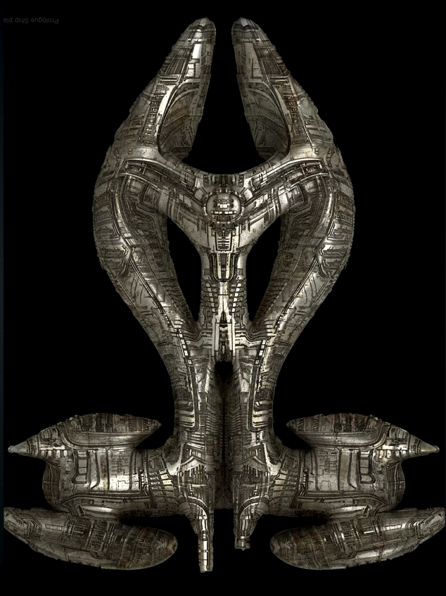 A more or less relevant and rare image of the Derelict with closed entrance, I can't find it in higher res: