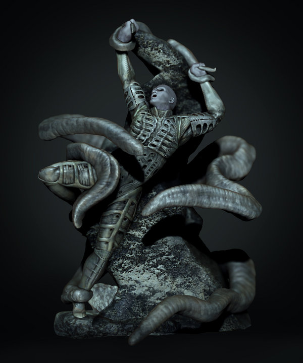 Its always my interpretation that such a thing is what the Mural was showing and this Fan Art is amazing it really shows us maybe what happened to that Engineer, and the Result being the Fresco Creature in Prometheus.