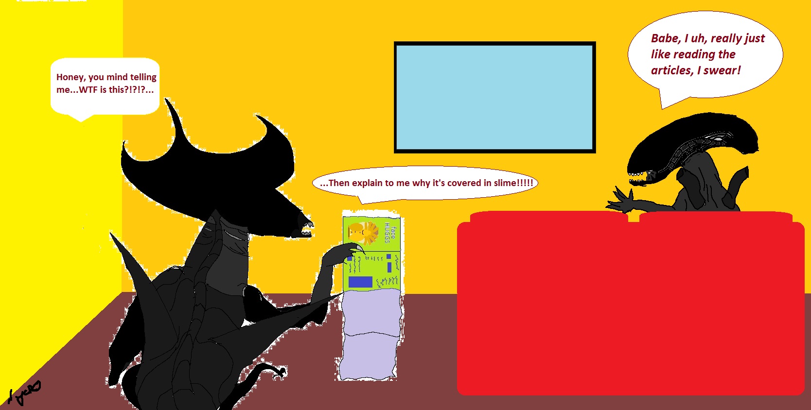 "Godzilla Sharing Gnome Snack with Xeno AVP Warrior on Dining Room Terrain; Sharing is Caring":
