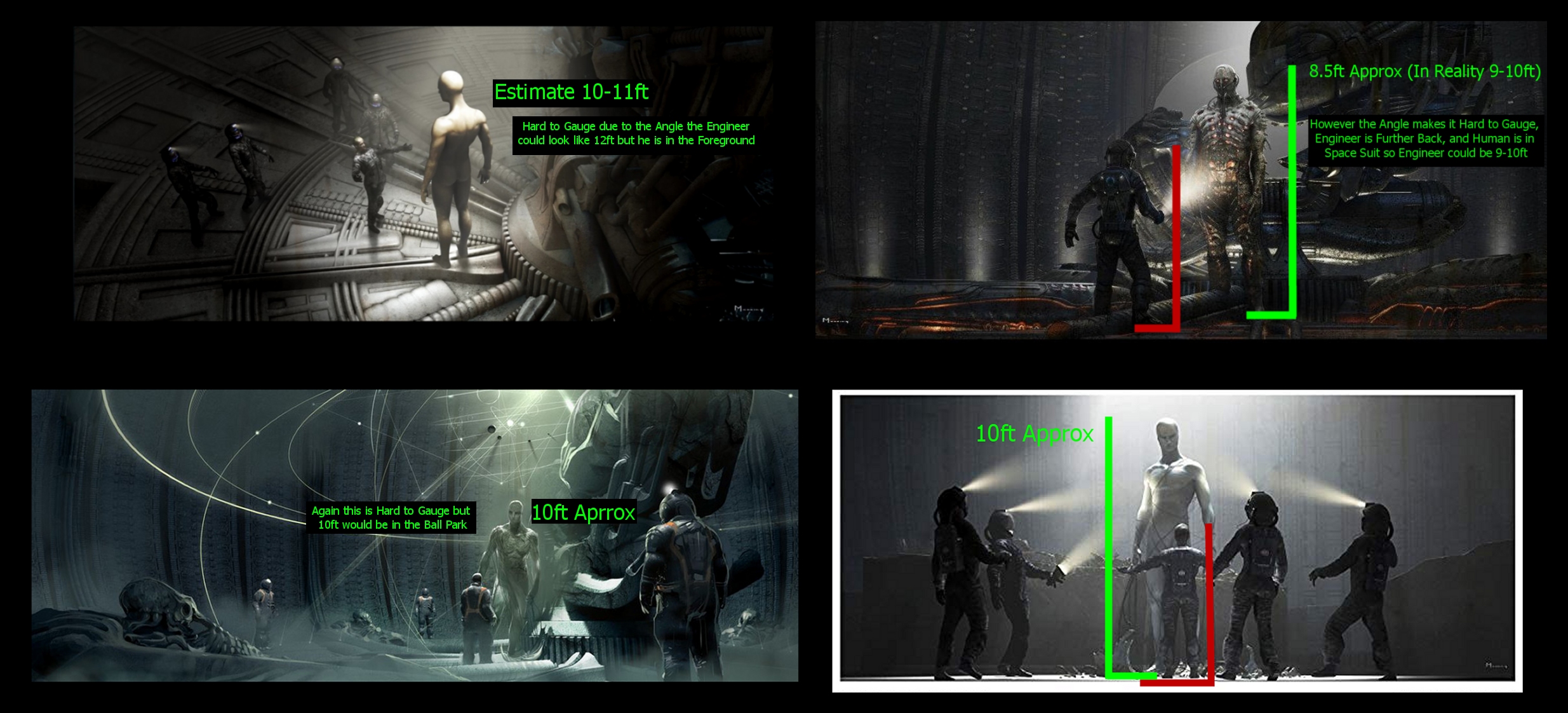 So indeed as Prometheus was based of such Theories... then those 7-8ft Engineers certainly dont fit the 12-15ft Bill for the Space Jockey.