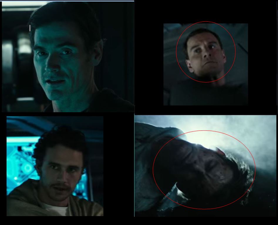 Not sure whose face that is. One would assume if it is Walter, the blood would not be red/dark in color as it appears to be in the shot. Not only is Elizabeth Shaw (Rapace) going to play some part we know not about yet, but I think Jacob Branson (Franco) will too.