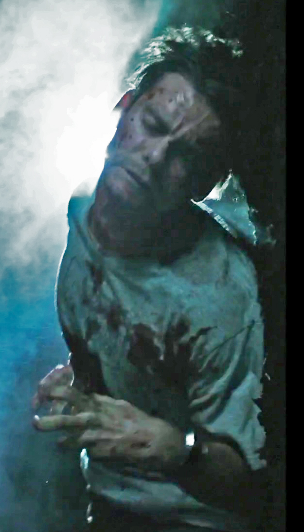 Crudup is not wearing a Watch in the Last Supper or the briefing with Daniels Clips... Also his T-Shirt in these shots is darker than the guy who is being Chest Busted a fair bit darker.