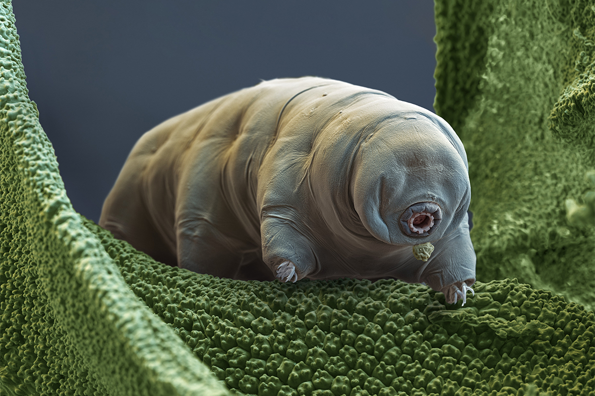 The tardigrade, or water bear, is the single most incredible creature to have ever roamed the Earth. A tardigrade is a water-dwelling, microscopic animal with a segmented body and eight legs. They are nearly indestructible. They live and thrive on the most extreme places on the face of Earth, from the bottoms of the deepest, darkest, hottest trenches of the ocean, to the tops of the tallest and coldest mountains.
