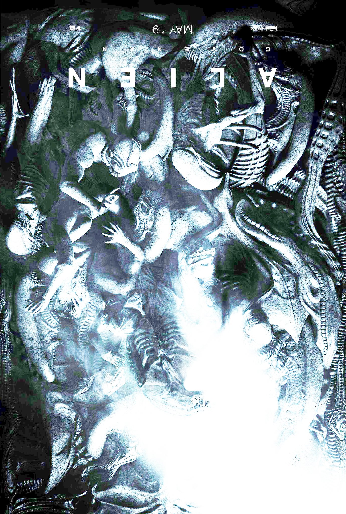 Inquisitor, but there is a Human on this planet. In fact there will be a number. David obviously ends up (using Shaw) creating the first true Xeno. Perhaps we end up witnessing the first Hive which finds an Engineer outpost and this poster is the outcome. I think the fact that there are three Queen hints (crown like carapaces) hidden within this poster and we have seen Eggs and Huggers in the trailer means we will probably see some kind of Queen. Big Dave.... A young Queen perhaps?