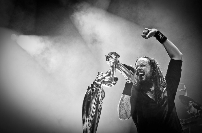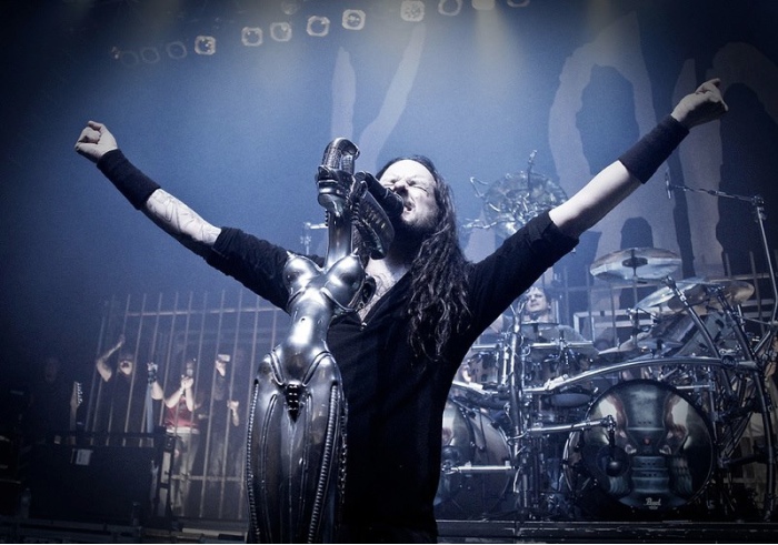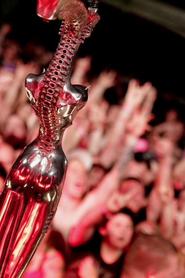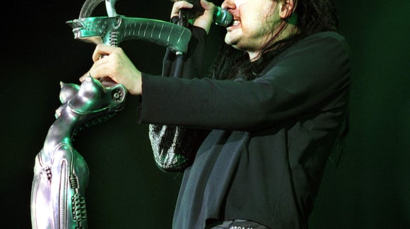 As per request by my brother(he's a big Korn fan)Jonathan Davis with his H.R. Giger custom made mic stand.
