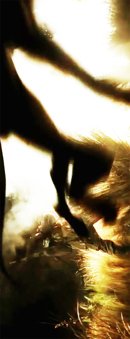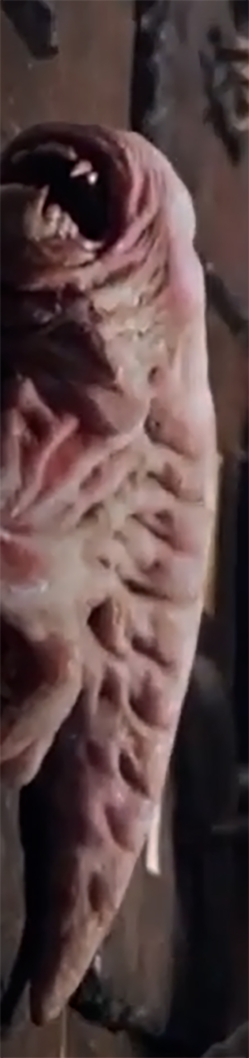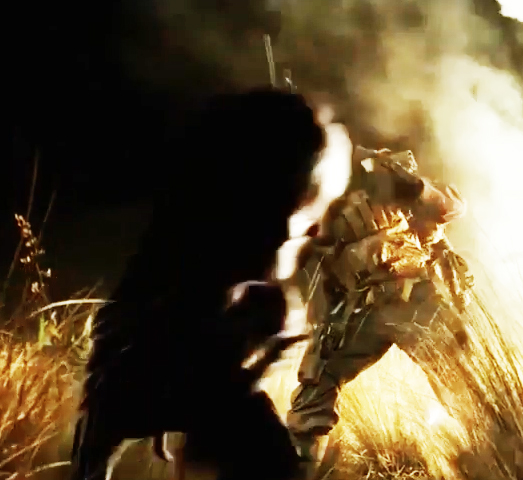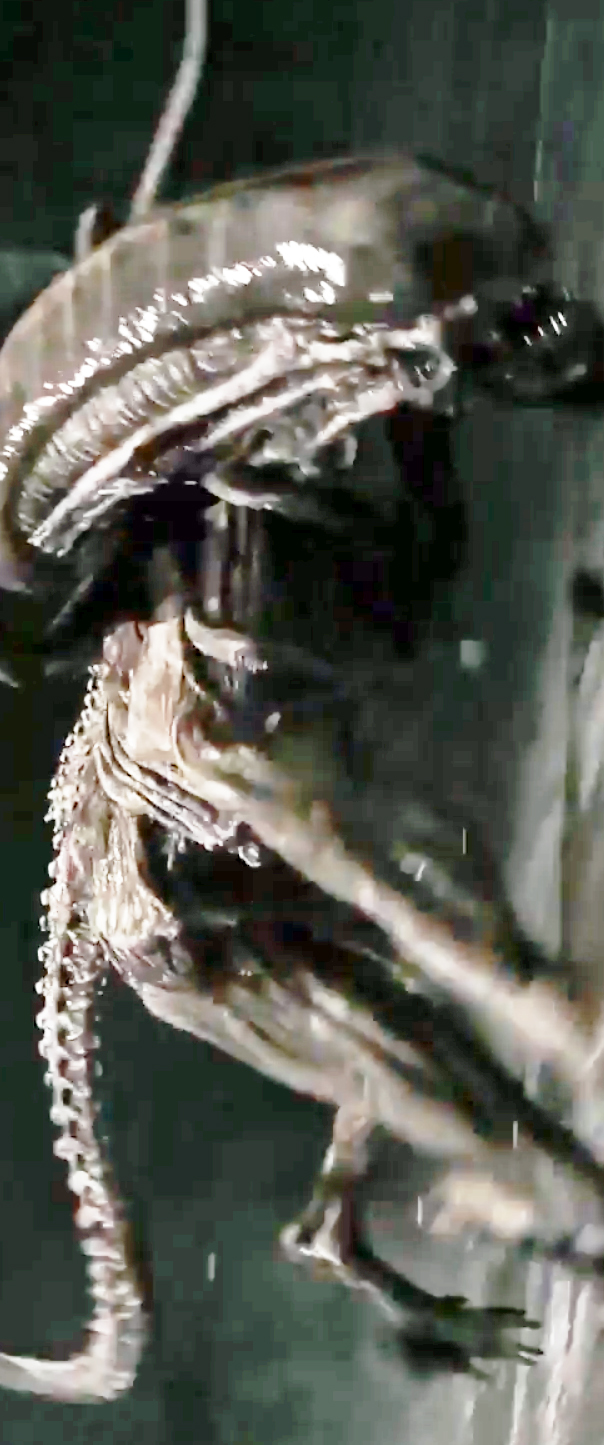 Also, if you look towards the left side of the pic where it's teeth are fully beared, you can see the shape of its elongated head, seemingly similar to the one that attacks in the wheat field in the second trailer