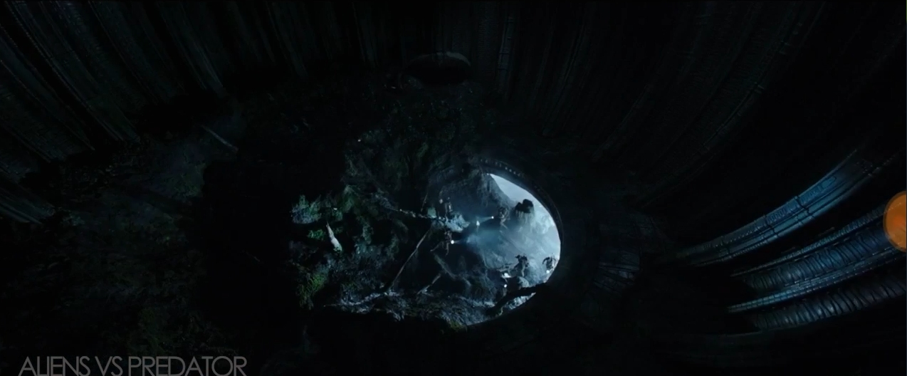 "These scenes began with a curved Engineer ship arriving on what must be the Engineer home planet, as scores of curious bald grey people are witness to the ship’s arrival in a coliseum-like structure.