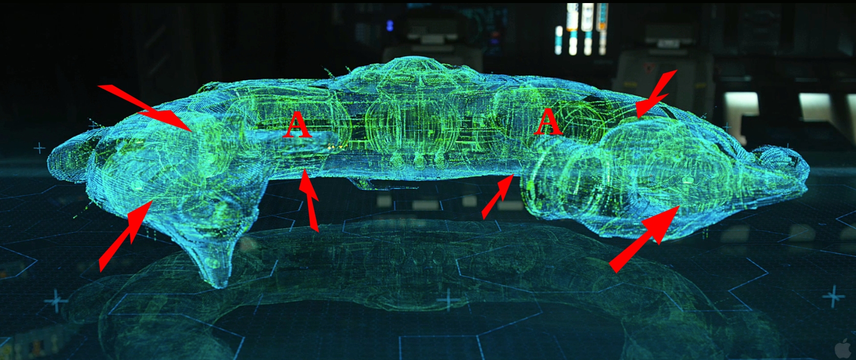 I will assume Area A either side in this image but the arrows point to other options at the bottom of where they are pointing but i think either Area A or the section next to them further away from the Center Pilot Chamber