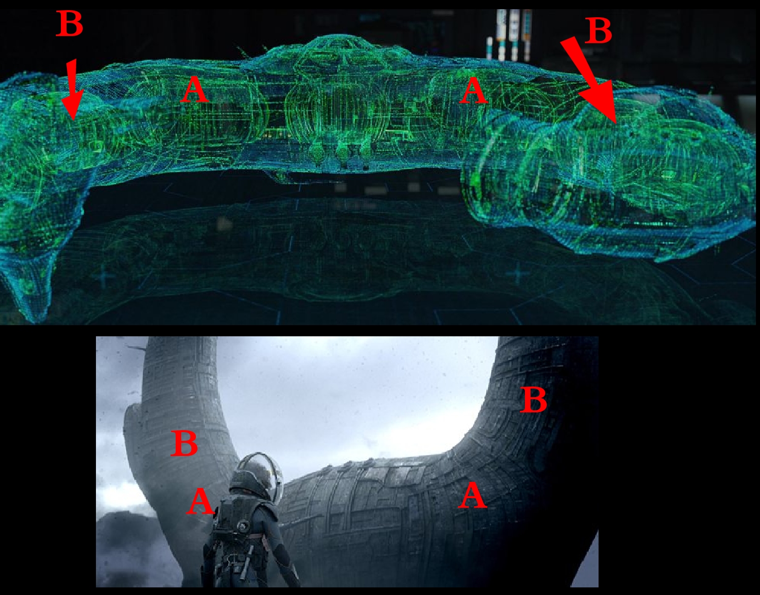 I can only assume the Cargo Holds that David is walking past in previous post are located at A, with more maybe at B.