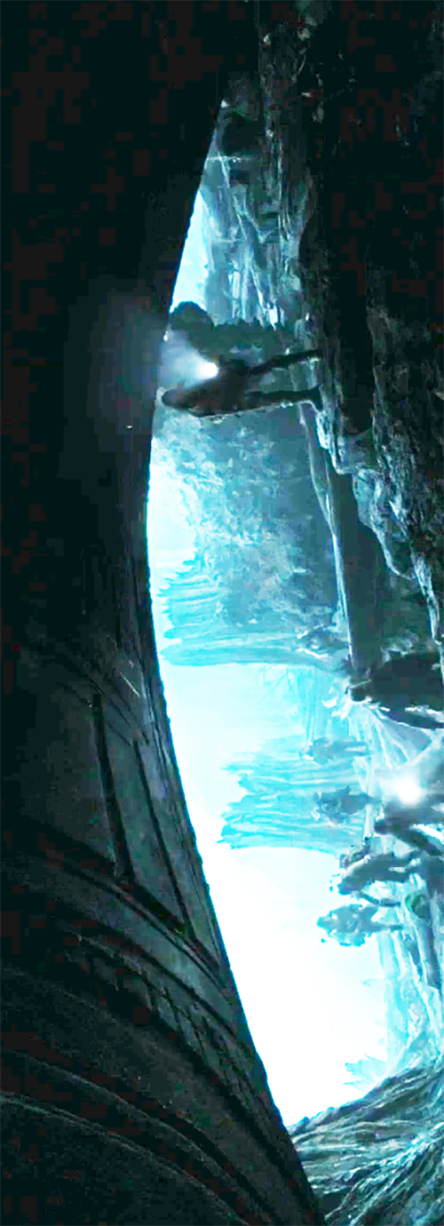 I was suprised to see (in 2012) how the ship flies... I mean the flash can be seen between the two 'arms' or I don't know how to name them. When the ship flies the arms are backwards. Until 2012 I thought that the Derelict flew with the arms onwards. I hope you understand what I am trying to tell...