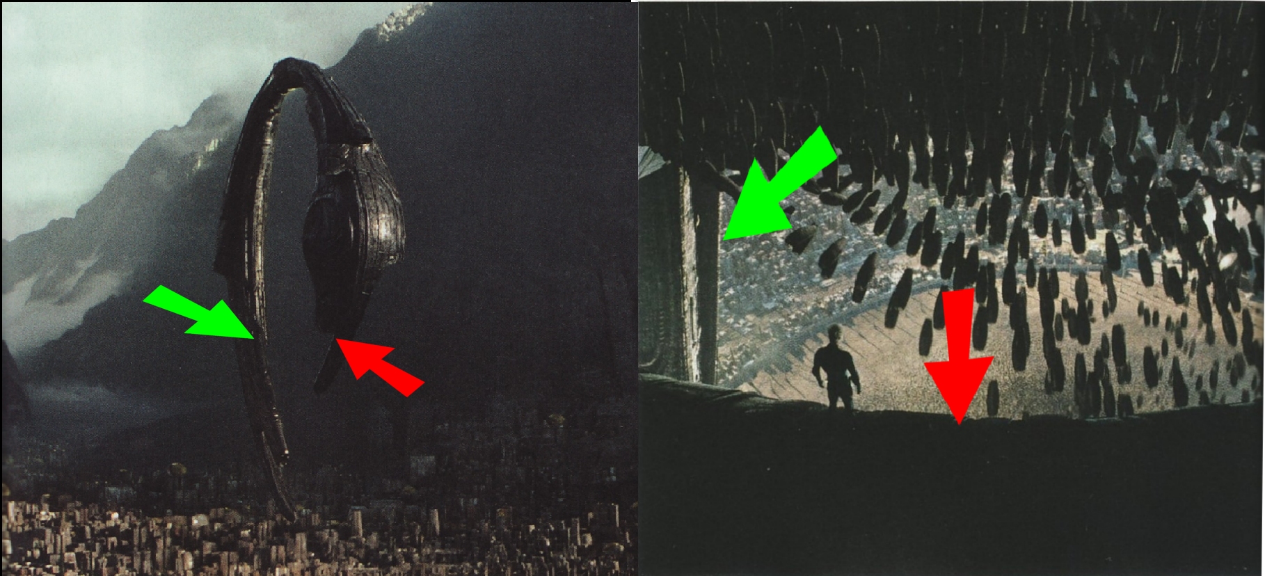 1) Which of these ships has risen from that Hanger? Or have both arrived from different places and the Hanger is opening up to allow them to Dock?