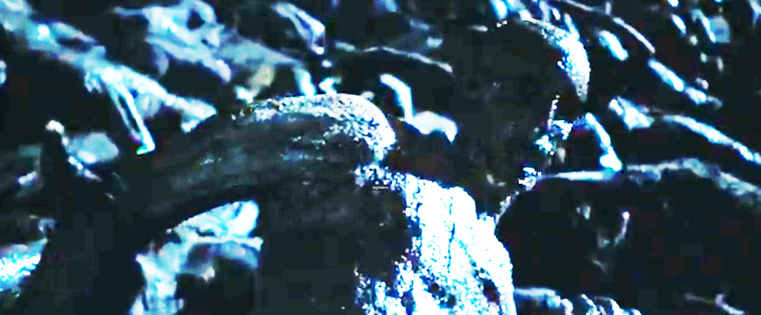 "The footage started with an arc-like ship flying in the air. Think of it like an upside-down U, with the opening at the bottom. It then links with the iconic ship we recognize from LV-426 and other Alien films—the craft is a similar shape, but is flying in a different configuration. They link with their open ends, kind of like a puzzle, and we realize this is all happening above a civilization of creatures. They aren’t humans. Nor are they engineers. They seem to be something in between. It’s then that we see David—the android we first met in Prometheus, played by Michael Fassbender—on the ship, where he unleashes hundreds of black canisters. These are the same ones we saw in Prometheus (and in the image above) and, as they hit the ground, they begin to destroy the population with the black, liquid death.