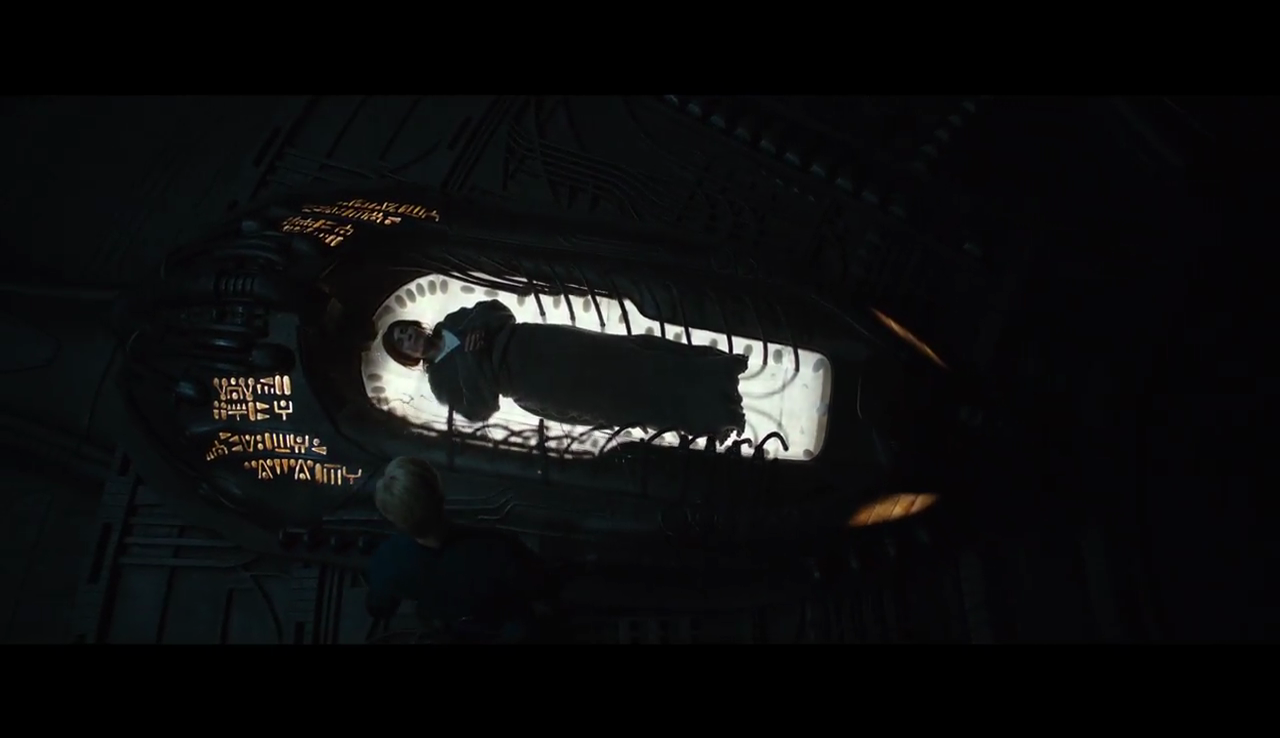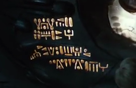 'The production team carried over the engineer alphabet created for Prometheus. All the hieroglyphics actually say something, but it might be rather difficult to decode since not all the translations are in English.'
