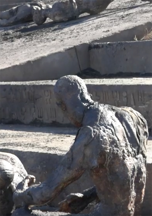 The close up of the ravaged Engineer is reminiscent of the injuries suffered by the sacrificial Engineer in Prometheus. They both have a similar gouge in the spine area.