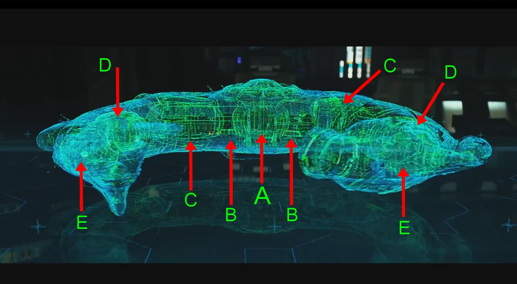 My explanation being above.... (F) is where the Pilot Area lifts up to during Bombardment, and (G) thus area it links up with which explains the area Shaw sets up shop to operate on David and also Gaze out of the Port Hole
