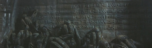 'The production team carried over the engineer alphabet created for Prometheus. All the hieroglyphics actually say something, but it might be rather difficult to decode since not all the translations are in English.'