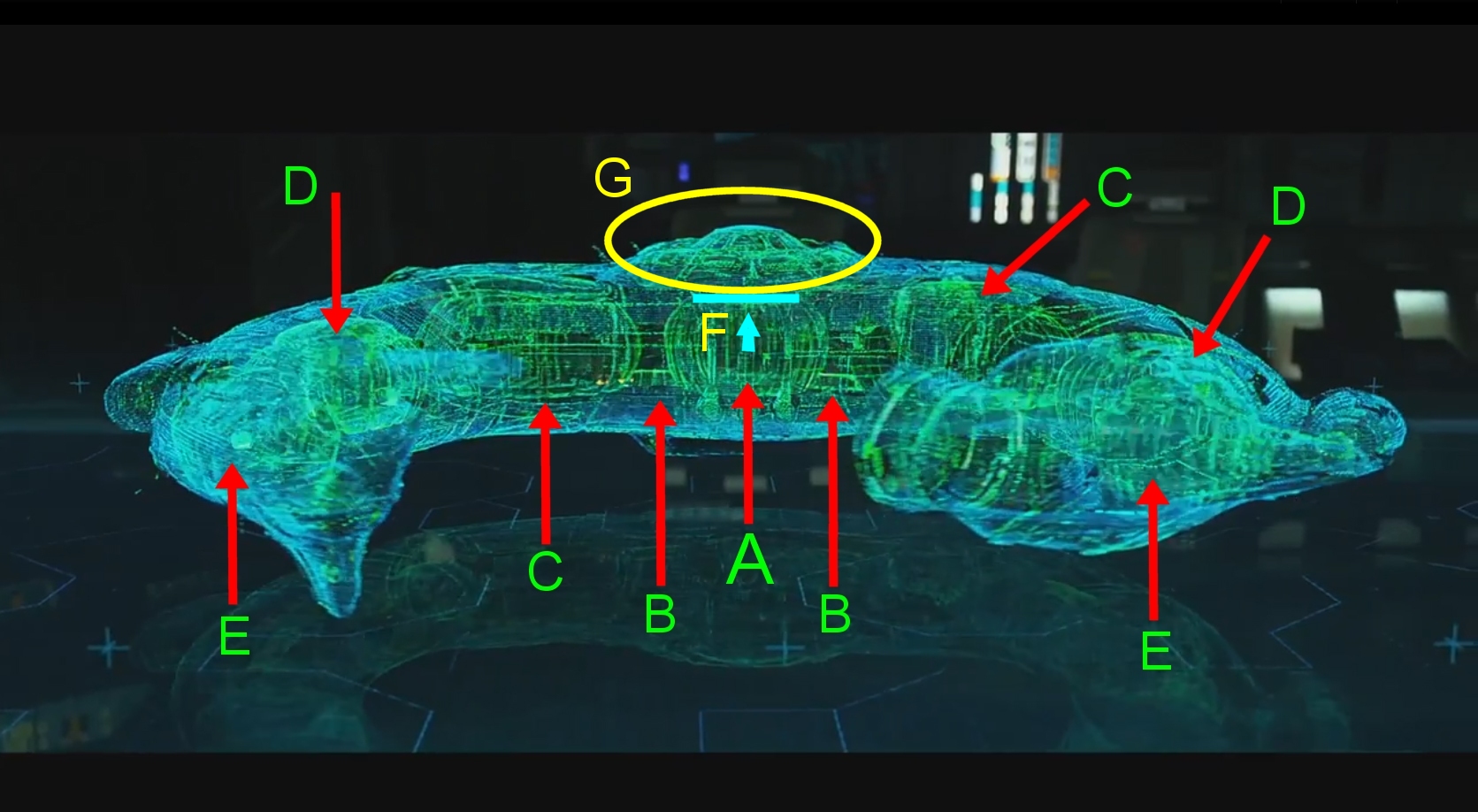 Maybe as this Cargo Hold was raised higher, it would allow for a gap beneath it and this would explain why the Crew of the Covenant appeared to have to enter downwards to reach the level of where the Space Jockey suits are, so they climb though the Hole into the Cargo Hold that i have labeled as B then exited this to reach the Passage with the Space Jockey Suits before finally entering the Pilot Chamber on the opposite side that David and Weyland etc did in Prometheus.