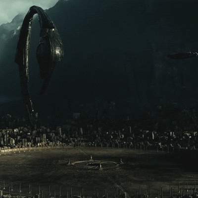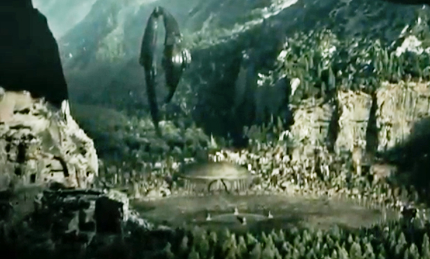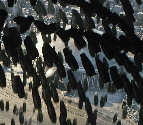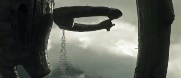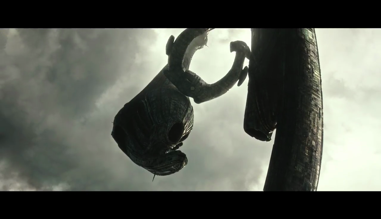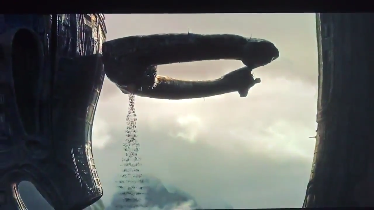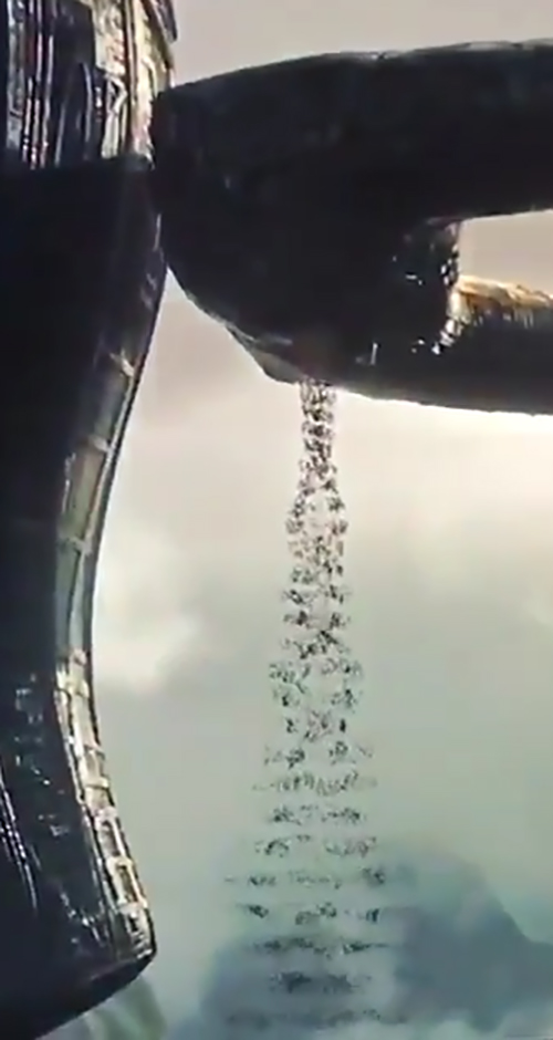 I keep building on my projections in regards to the weaponry because the visuals become more fantastic as we close in on the movie's release. The DNA-like strand structure of urns dropping over the large opening in the larger ship begs for theory.