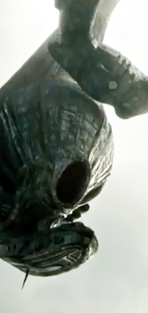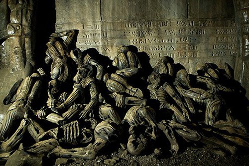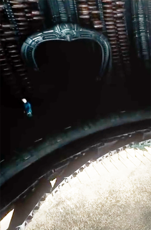 So if everything Geiger did was sexual innuendo, what is this like skat? The jockey chair looks like an erect penis with balls. The facehugger is clearly a vagina orifice, outer vagina lips. The juggernaut looks like two legs taking a dump in an open hole below, like skat. The alien is one big moist penis head, don't believe me, look it up, Geiger was into all sorts of kinky, dark, fetish sexual things, that even police questined his art. The Engineer gets it oral and is impregnated in Prometheus, if that is not sexual what is...creation is sexual, its nature. It's like David is shooting a load in Engineer's face or taking a dump on them..it pleases him, it makes him feel big, its gratification.