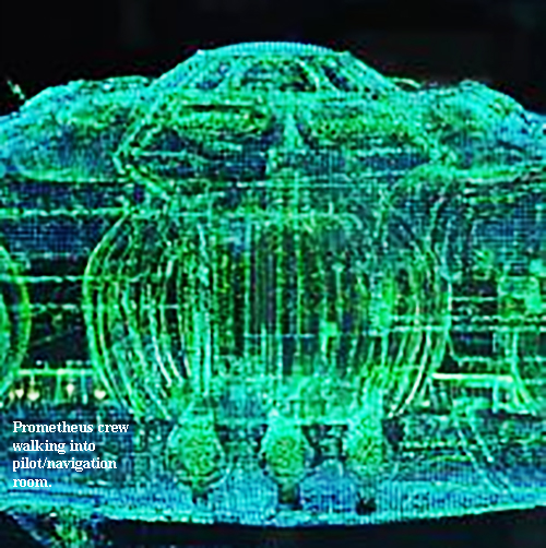 The Prometheus crew is the group of yellow icons on the left of the hologram image.