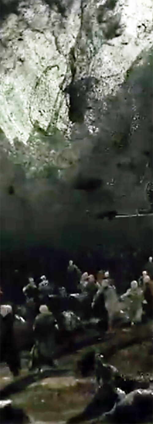Babylonxeno, yes he (David 8) does appear to get knocked out of the sky (below) with the juggernaut crash. I'm with BigDave on the golden structure being a dual use tech (electromagnetic) and those on the ground responded with it and the juggernaut below crash as a result. Again, who knows...