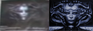 I tried to alter the perspective of the set-pic (left) and scaled down/darkened the giger original (right).