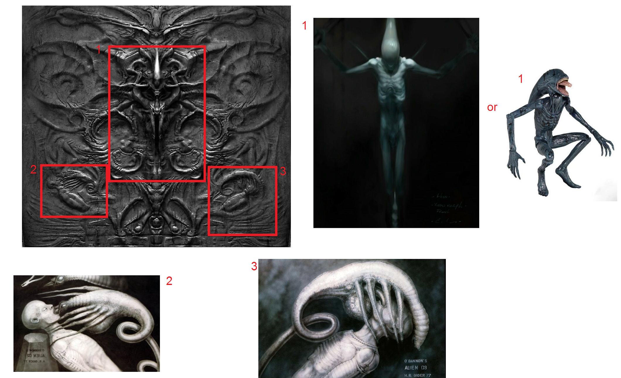 For anyone who is still wondering about the 'mural' on the wall in Prometheus, and the xeno-looking figure on it, and the jumbo-sized facehuggers you can see on it, etc. etc....