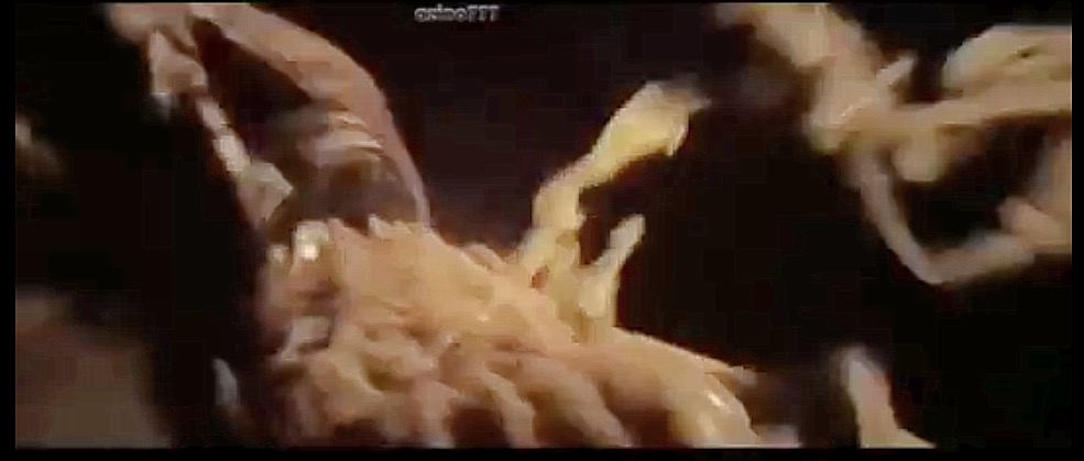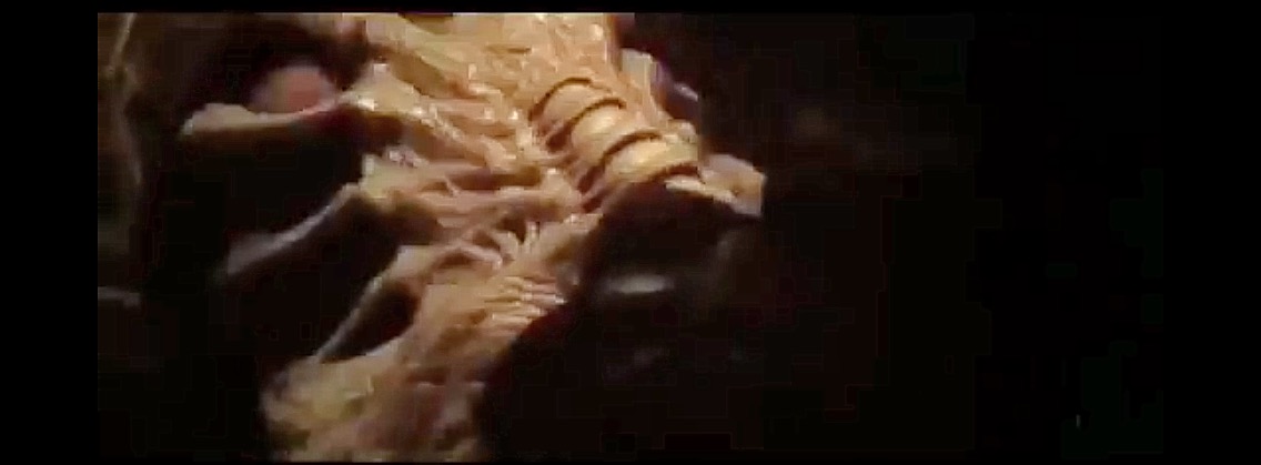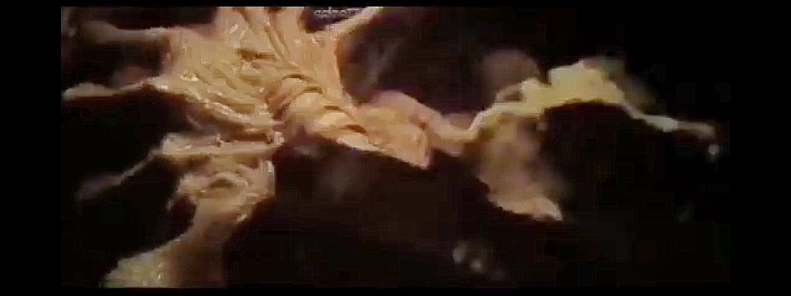 Further to the discussion re. Lope and the facehugger, I have started this post to add screenshots of where the proboscis is visible after being removed from his face. Whether this was when he was impregnated or via other means on the Covenant I don't know.