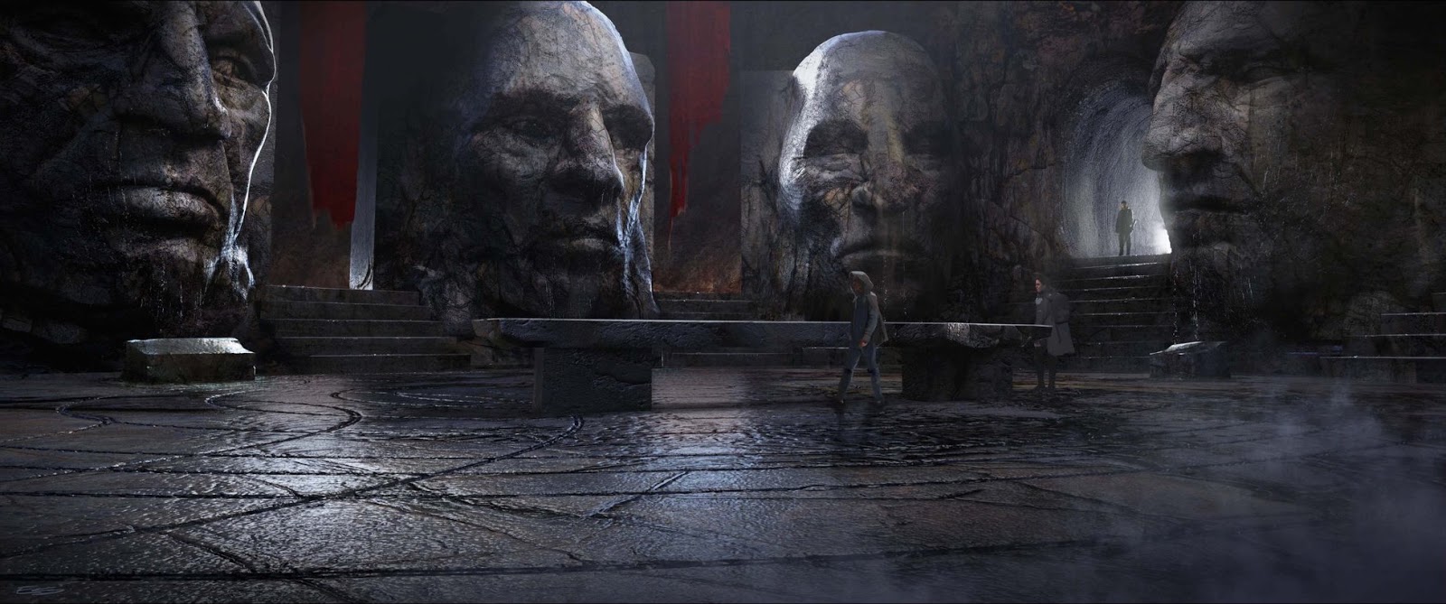 ‘Pyramid – Core Chamber: The vast central chamber of the pyramid. An immense space. Holloway walks in, his flashlight searching. Watts hurries after. The others follow, rovers tagging along. A colossal structure stands in the center of the chamber, convoluted and strange. A mechanism. Chasms yawn in the floor all around it, their depths lost in darkness.’ -- Alien: Engineers, by Jon Spaihts.