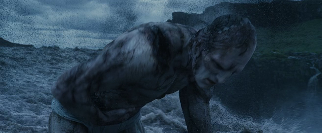 The head is inscribed with glyphs on its front and sides. One idea thrown around production was to have the Engineers bearing facial tribal tattoos. The glyphs on the giant head resemble the alien language inscribed on the structure’s walls, doorways and on the deadly ampules.