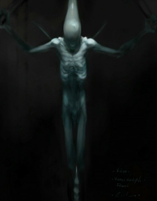 Engineer Origin Planet. Arriving at their home planet, the engineers tell their creator what the humans did to them. At the same moment, their sky gets dark. A gigantic spaceship arrives their planet. Hundreds of dark creatures appear. Slowly but curious, a gigantic white creature rises from an engineers battleship. A passenger from LV223.