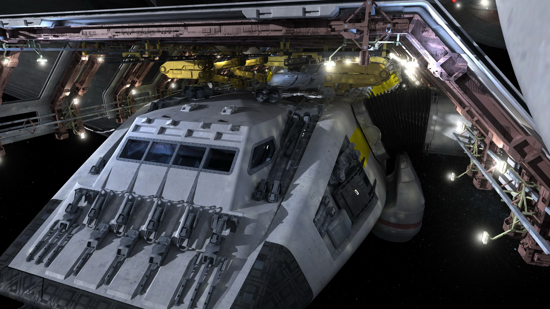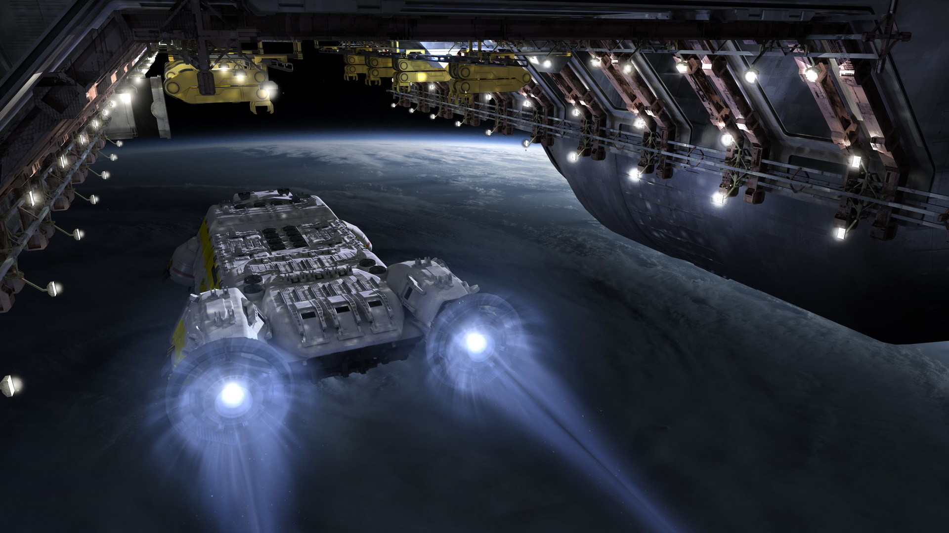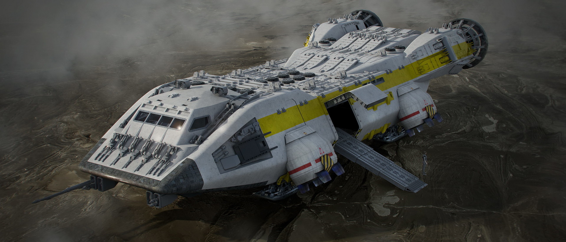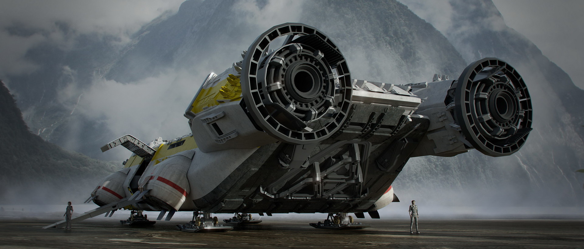 ’Chris Seagers provided me with a lot of reference, and the no-nonsense LCAC (Landing Craft Air Cushion) hovercraft used by the US Marines was key for both of the Covenant's smaller shuttles. The Lander was semi-amphibious, able to touch down on water. It was a fairly large craft, capable of supporting a survey team in establishing an off-world colony. As with the other ships, the Lander went through a number of generations before settling on the final size and proportions.’
