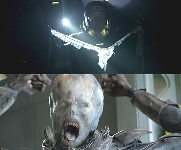 In the recent AVP Podcast, participant Xenomorphine told us that during a conversation he had with Creature Effects Supervisor Conor O’Sullivan the original intent was to bring to life Giger’s Necronomicon IV Alien, not the more human-like Alien we are familiar with. Pity, I was longing for that, because the clapperboards had teased it! That could have been different and awesome, another missed opportunity.
