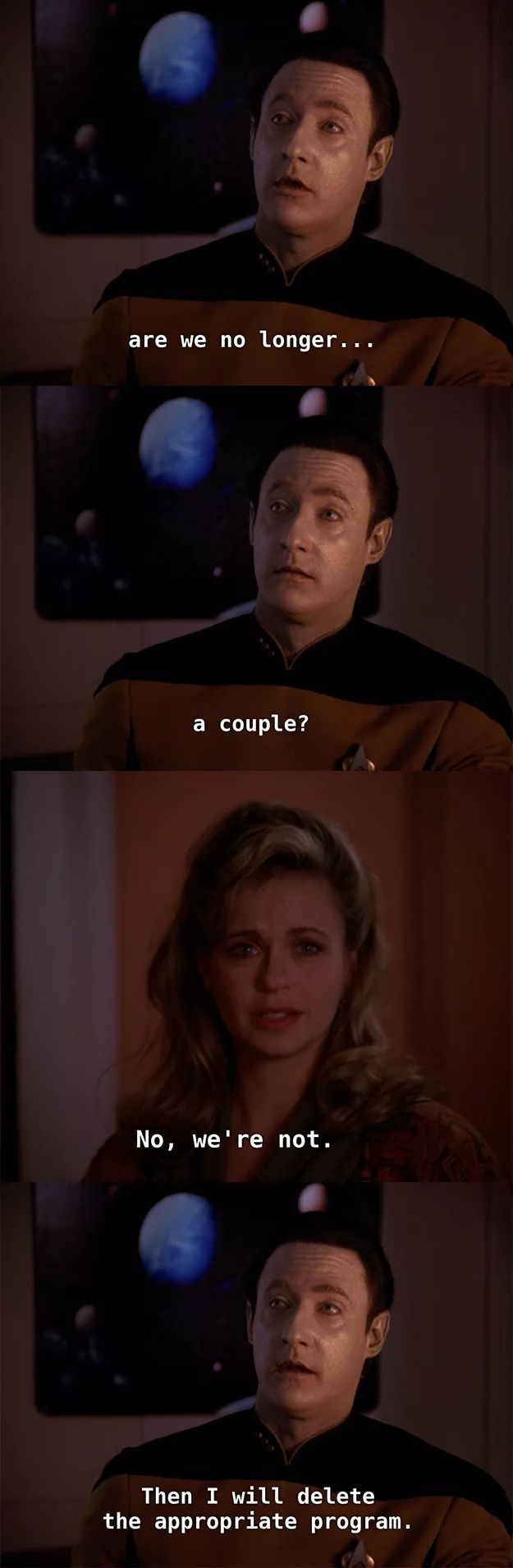 haha... no kidding. At least Commander Data had the right idea: