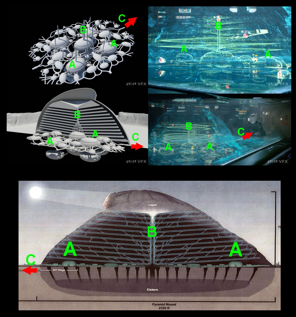The Prometheus Re-write (Edit) i worked on would have shown a Glimpse of behind this MURAL were it would have had more Clear Murals/Frescoes but also housed like Cryo-Stasis Pods standing upwards as well as other Smaller more Spherical Pods showing us this Room was where they Stored Hosts and Face Hugger like Organisms.