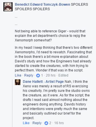 Dane Hallet had even confirmed that the Engineers had NOTHING to do with the Xenomorph (as far as the Direction they had taken).