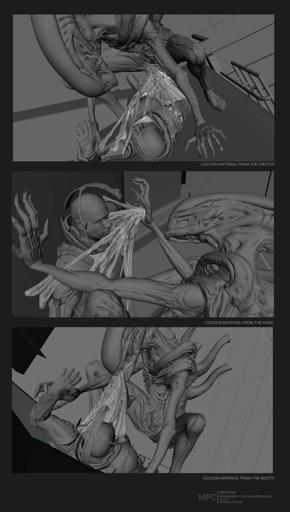 It looks like there was a cocoon scene planned in Covenant at one point. This is concept art MPC came up with for the movie.