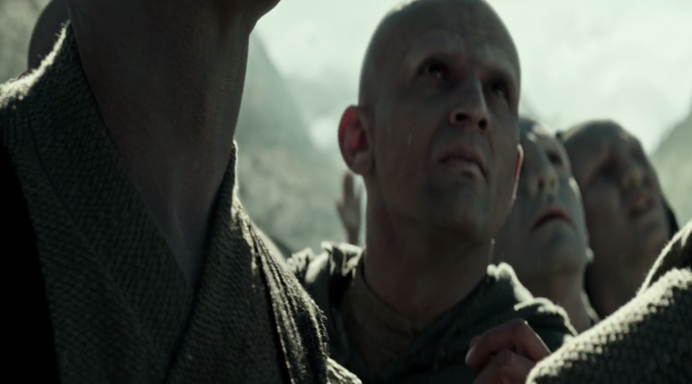 I see lots of comments about the eyes being different than the ones in Prometheus, and some saying they were black. Other than the eyes of the shorter (female?) Engineer, which look like they have a brighter sclera than the others, the rest of the Engineers eyes are so dark they can barely be seen.