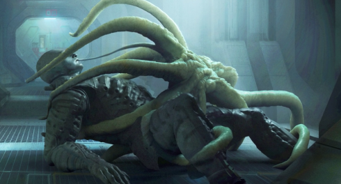 ‘The Trilobite’s short lived battle with the Engineer also references one of Ridley Scott’s comic book influences – the Dan O’Bannon scripted/Moebius penned The Long Tomorrow, which also provided a major influence on Scott’s own Blade Runner. In the strip, futuristic gumshoe Pete Club is attacked by a shape-shifting ‘Arcturian spy’ who morphs into a gelatinous, amorphous creature mid-coitus. He fights the creature off and aims his gun. “That’s it for your little Arcturian love games,” quips Club, before destroying the shape-shifter. The Engineer in Prometheus does not prove so triumphant. He is overpowered, impregnated, and births the Ultramorph Deacon creature.’